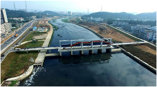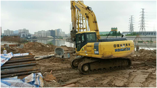 图片为茅洲河综合整治工程 施工围堰 工作面
