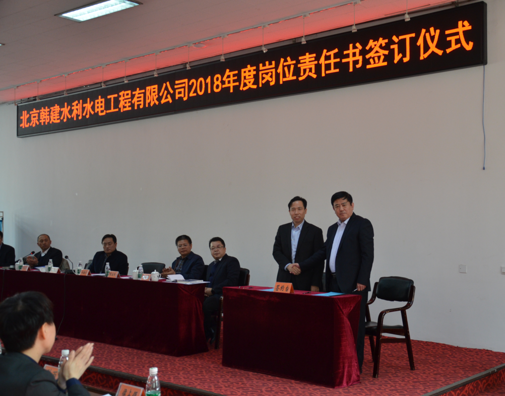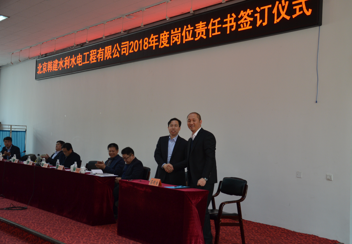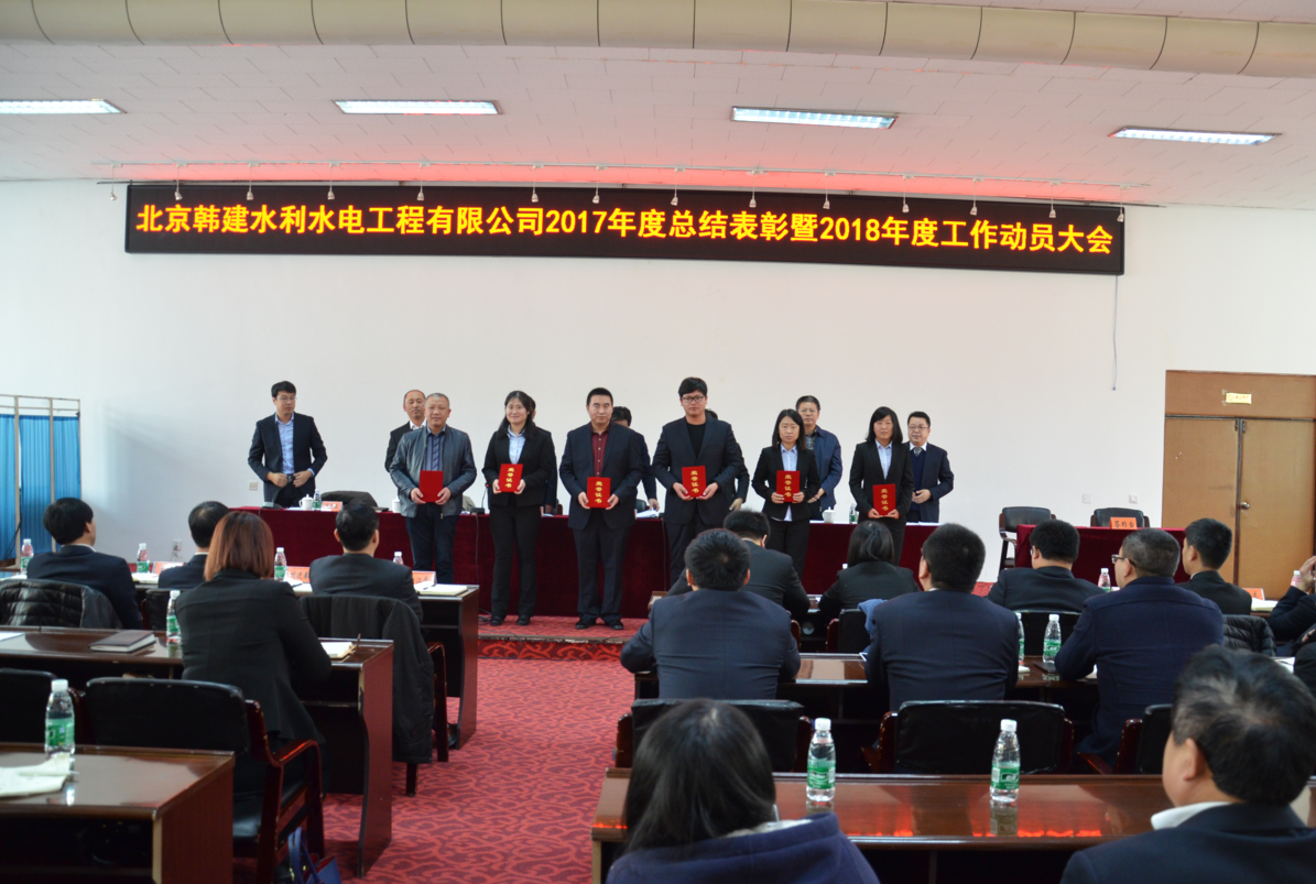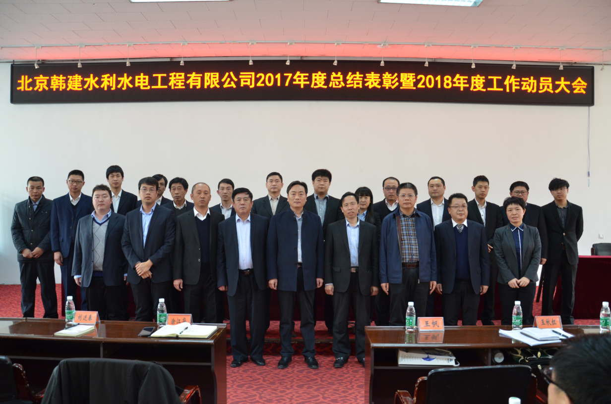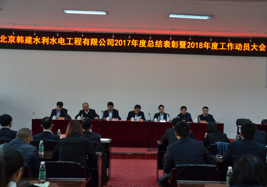 2018年3月9日上午,北京韩建水利水电工程有限公司在韩村河山庄9号会议室召开“2017年度工作总结表彰暨2018年度工作动员大会”,总经理孙海龙做了“不忘初心 牢记使命 同心筑梦 砥砺前行 严控成本 增加利润”的报告,集团党委书记、总经理田艳伟在大会上做了重要工作指示,给全体干部职工指明的方向。公司领导班子成员副总经理焦勇强主持会议。