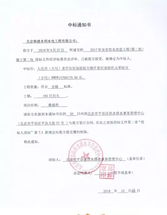 · 恭贺 I 我公司中标“房山区农村污水治理工程(梨园店等9村截污治污)-施工二标(石楼镇)”