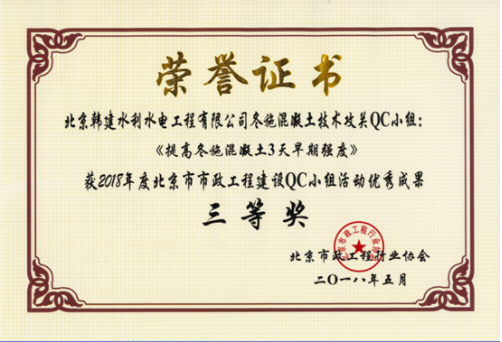 · 韩建水利水电公司荣获北京市市政工程建设QC小组活动优秀成果奖