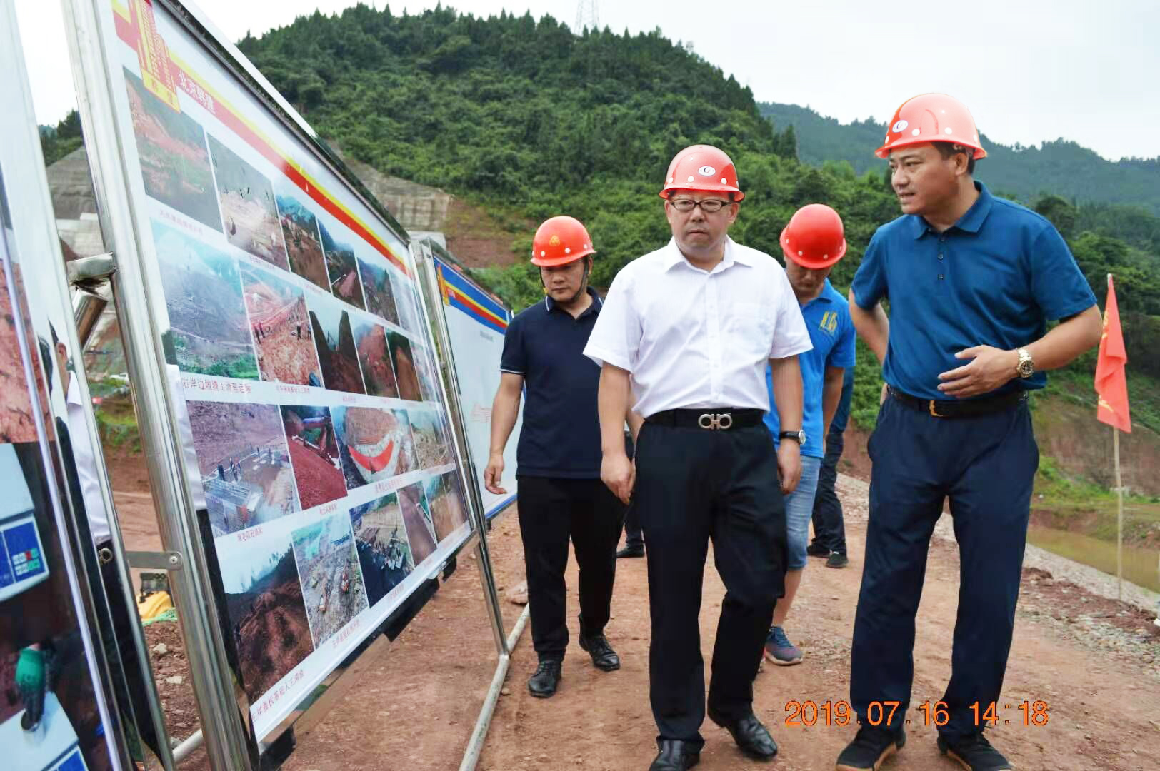 2019年7月16日,北京韩建集团党委书记、董事长田广良、水利水电公司总经理孙海龙一行高层管理人员到韩建集团施工的四川省达州市通川区双河口水库项目考察,韩建集团直属公司经理金胜强,项目经理胡正山接待了集团考察团一行。