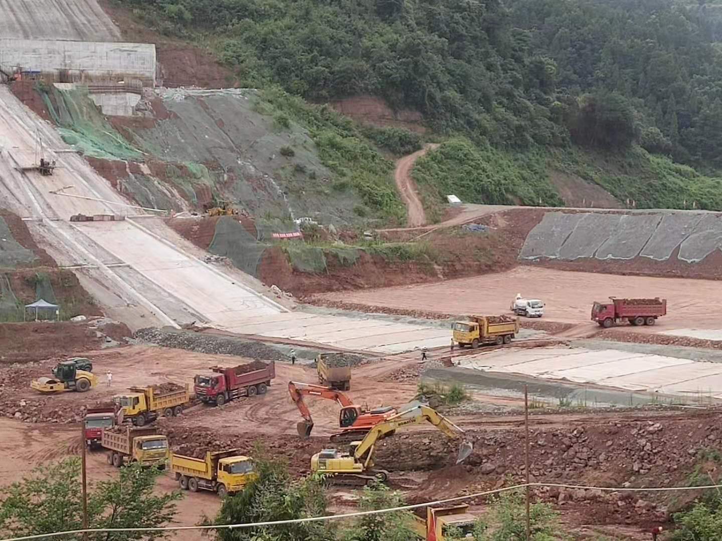 由于环境因素的影响,连日的阴雨天和间断的高温天,给项目建设施工带来了不小的挑战,但在工程建设现场工人们仍奋战在施工一线。截止目前,已完成工程总量的50%以上,基础灌浆工作已全部完成,大坝填筑至315高程,导流洞已开始导流,大坝工程已完成填筑30%,溢洪道工程完成50%,供水(放空)洞工程完成70%。