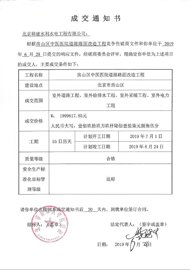 恭贺丨我公司中标 “房山区中医医院道路路面改造工程”