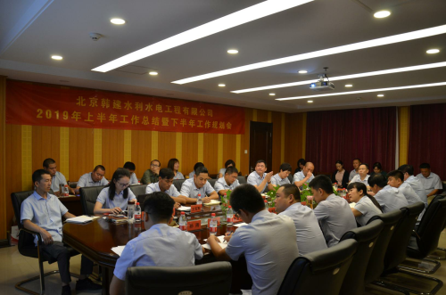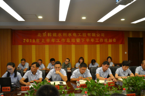 2019年7月30日上午,北京韩建水利水电工程有限公司组织召开了“2019年度上半年工作总结暨下半年工作规划”汇报会。总经理孙海龙及班子成员、各职能部门和项目部主要负责人,近50人参会。会议由副总经理潘洪主持。
