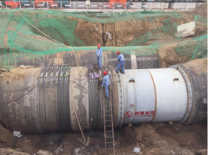 “1∶1原型试验项目”是为满足南水北调运行期PCCP管道突发事故后,完成安全、快速、高效的修复处理工作而实现的技术措施考量。包括滑动接头替换管安装和预应力钢绞线管道外加固试验,试验中为满足管内带水加固作业的实际施工条件,应用公司实用新型专利技术,通过特殊材料和工艺处理,减少现场拼装环节,达到了不间断输水情况下的抢修目的。截至目前,试验处于大口径事故管道更换及外加固工艺性试验阶段。