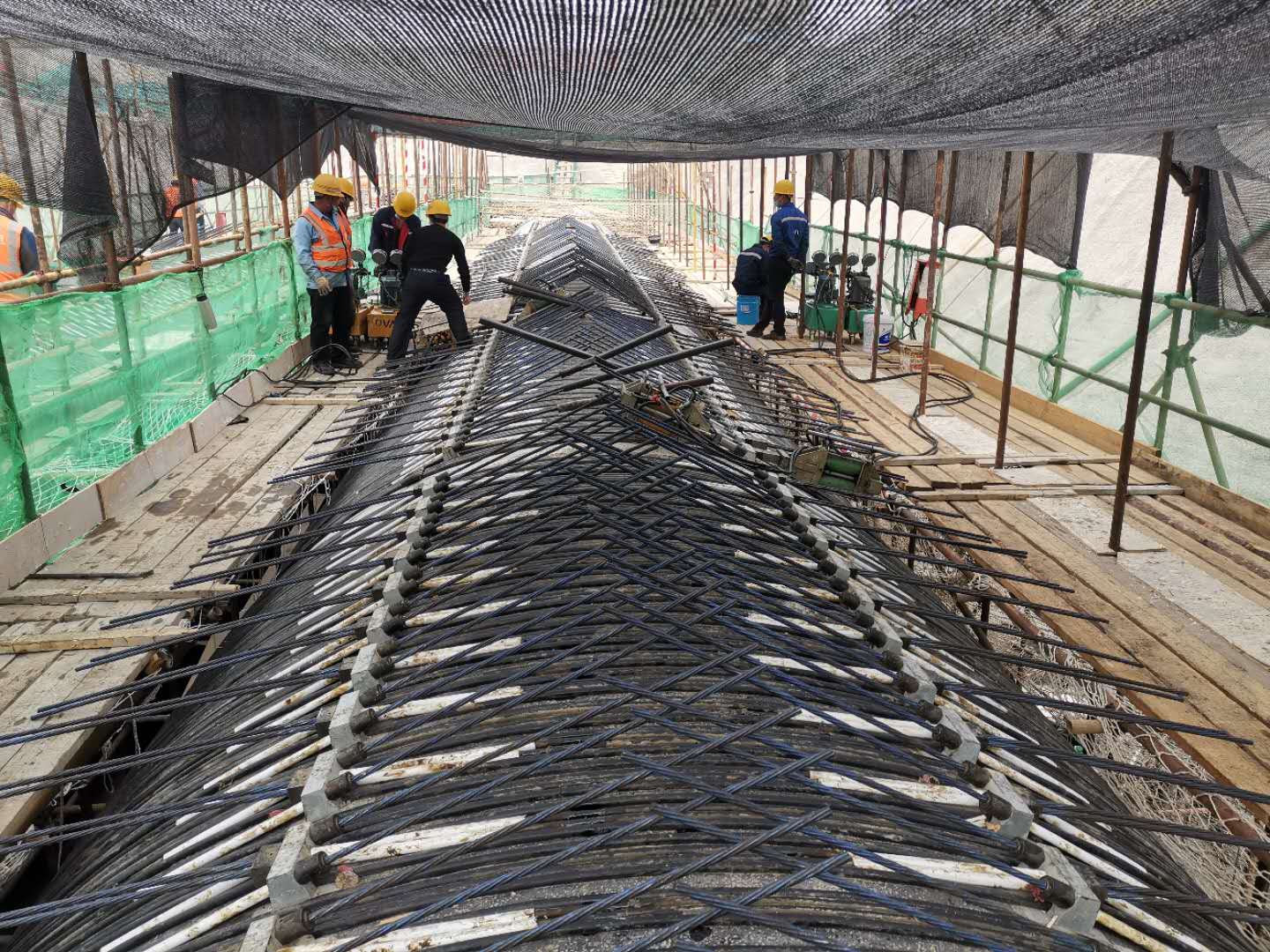 在生产发展方面,他们打通堵点,解决难点,举全水利水电公司之力投入到项目建设中,各科室各部门职工全部下到项目一线,全力以赴协助完成资料、计量、方案等重要工作。为了抓生产,韩建水利水电公司分秒必争,日夜奋战。为了给现场人员加油鼓劲,他们营造了秩序井然的氛围,安全警示牌醒目耀眼,工地规章制度详尽明晰,宣传标语响亮提气。他们严格按照操作规程施工,进入检修点必须做好一切必备防护措施才能从检修井口下到10米深的管道。PCCP管道内的施工人员实行分散检修,相互保持安全距离。为了保工期,他们在疫情期间各项资源收紧的情况下,仍然保证了管理人员、机械设备和资金等方面的大量投入。据不完全统计,工作量增加以来,项目现场管理人员增加至70人,施工作业人员高峰时达500余人。机械设备增加至60多台套,现场多面开工。目前,该项目管道加工已完成任务量的80%,内加固完成总工程量的75%。他们力争5月10日前达到通水条件,确保城市供水抢修工程顺利完成。