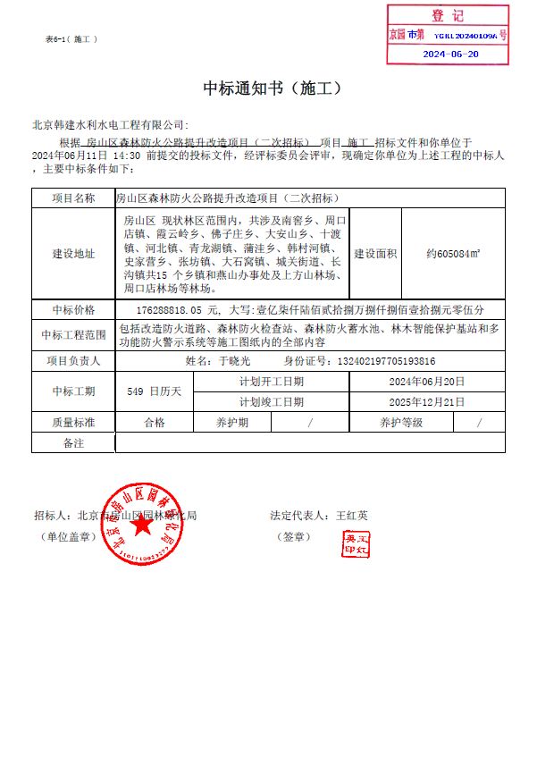 恭贺 公司中标房山区森林防火公路提升改造项目(二次招标)施工项目